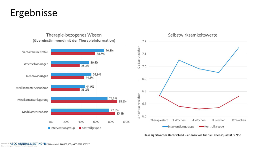 Das Coaching Konzept baut auf den Erkenntnissen der PACOCT Studie auf, welche durch eine strukturierte Schulung von Krebspatienten das therapierelevante Wissen und die Selbstwirksamkeitsüberzeugung von onkologischen Patienten verbessern und weitergehend positive Einflüsse auf Beschwerden und Therapieunterbrechungen im Vergleich zu nicht geschulten Patienten aufzeigen konnte.